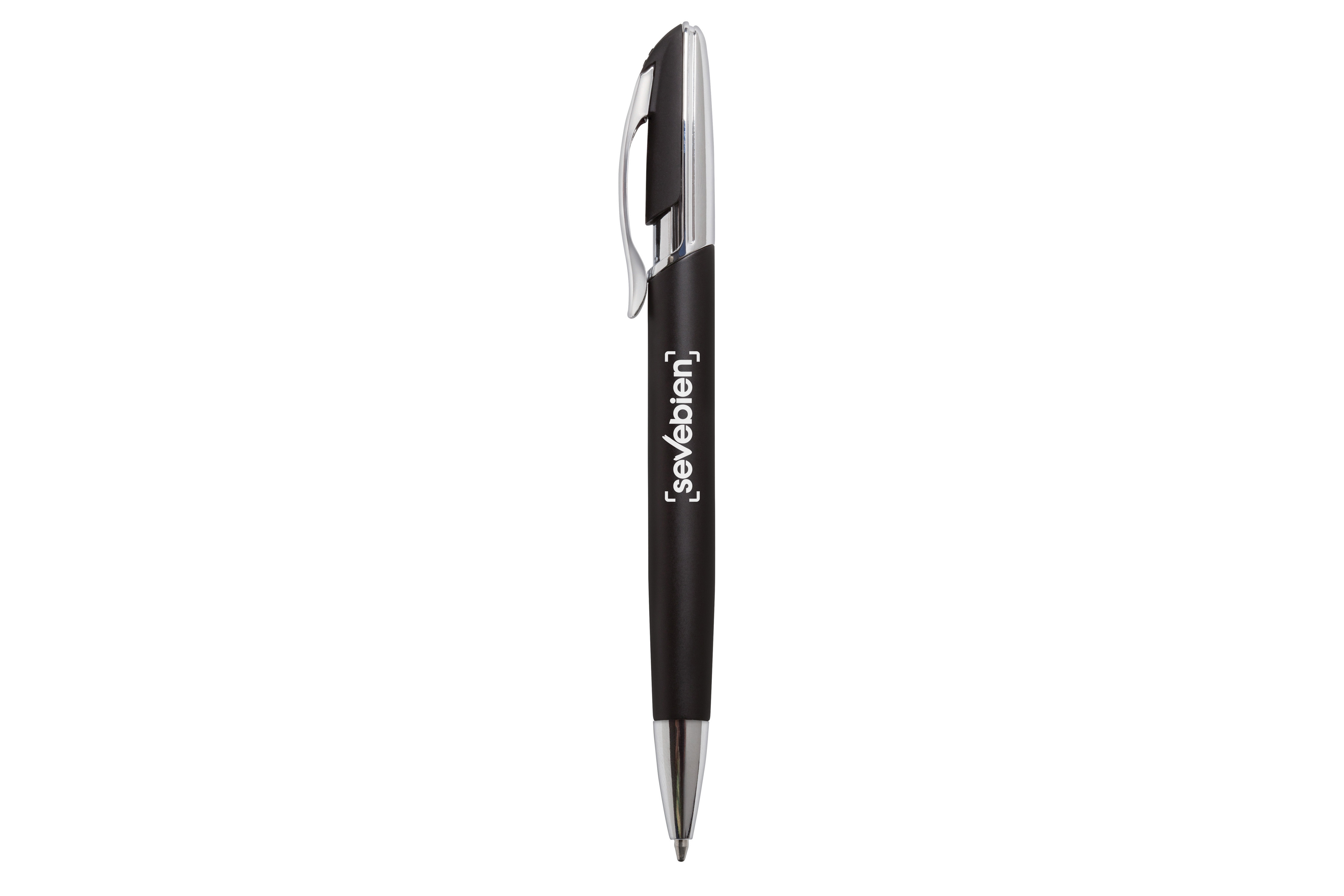Aluminio. Cuerpo en aluminio opaco. Pulsador y puntera plásticos color plata brillante. Clip metálico.Tinta negra. Electroplateado.