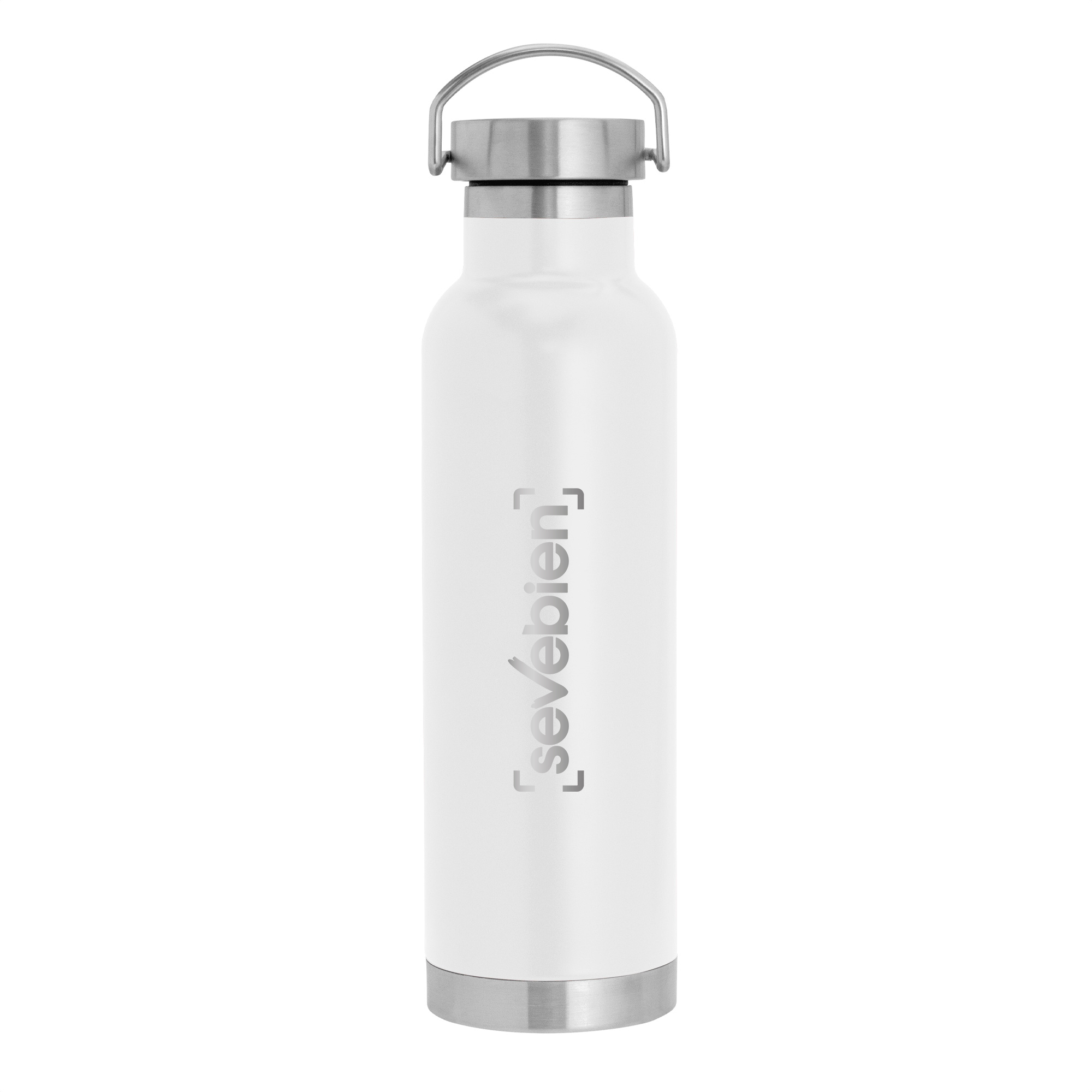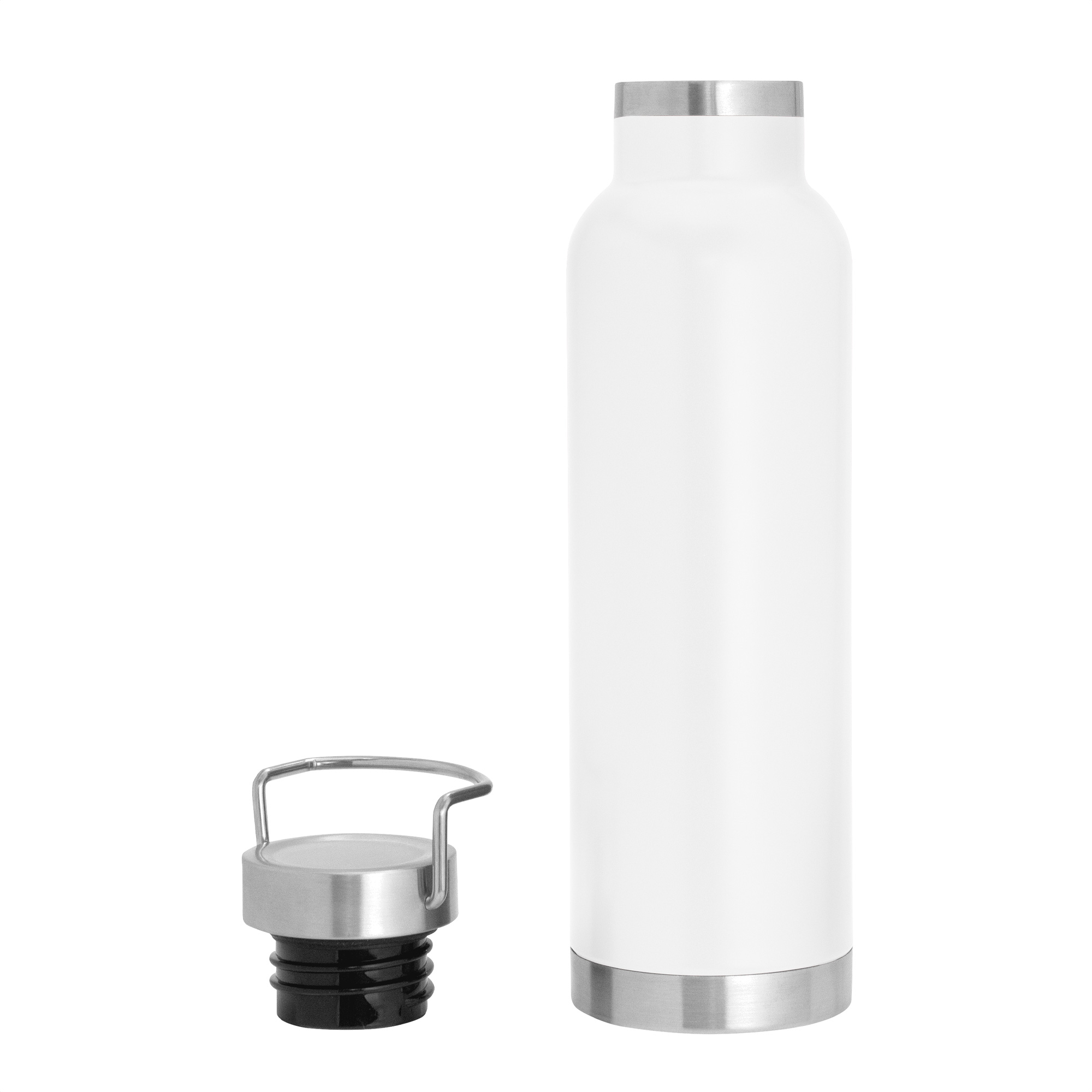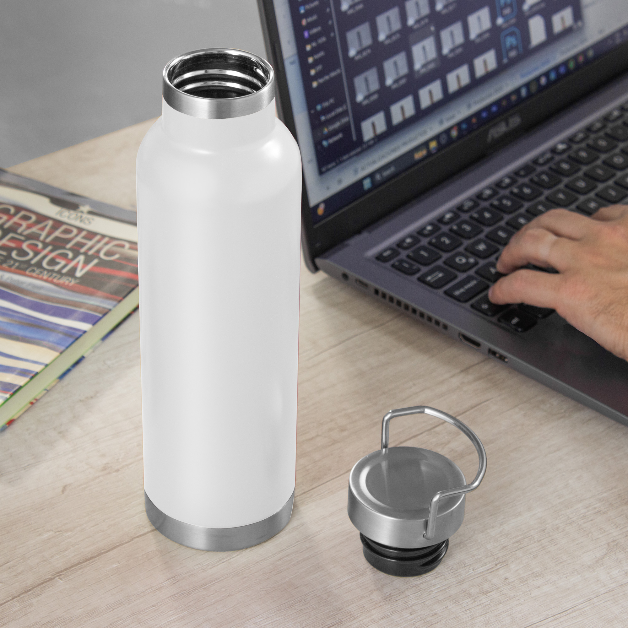 Ø 7,3 x 26 cm. Capacidad 650 ml. Acero inoxidable. Botella doble pared, sellada al vacío. Interior en acero 304 y exterior en acero 201. Tapa de acero a rosca con manija rebatible metálica . La medida de este termo es tan practica que con el tendras el liquido necesario para estar hidratado en el momento del día que elijas. Mantiene hasta 12 hs la temperatura de las bebidas calientes y 24 hs de las bebidas frías. Presentación en caja de regalo.