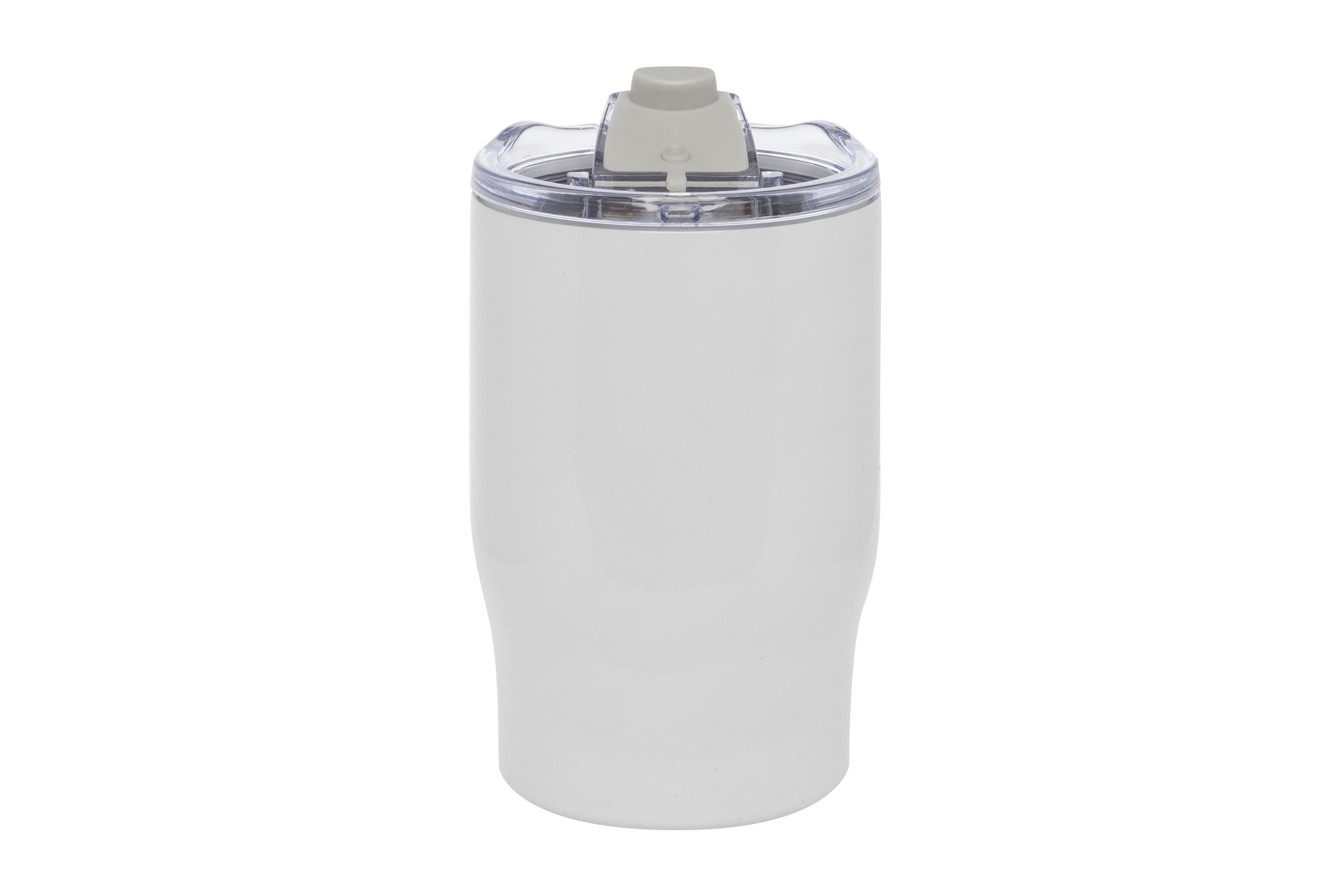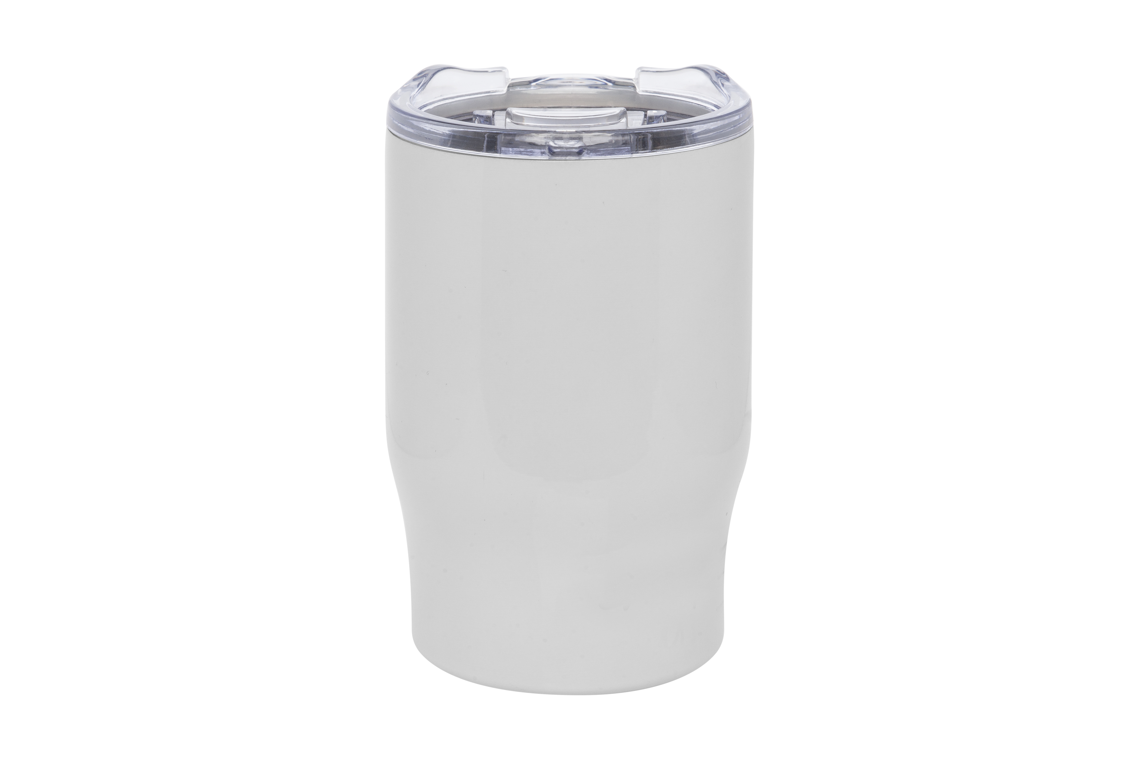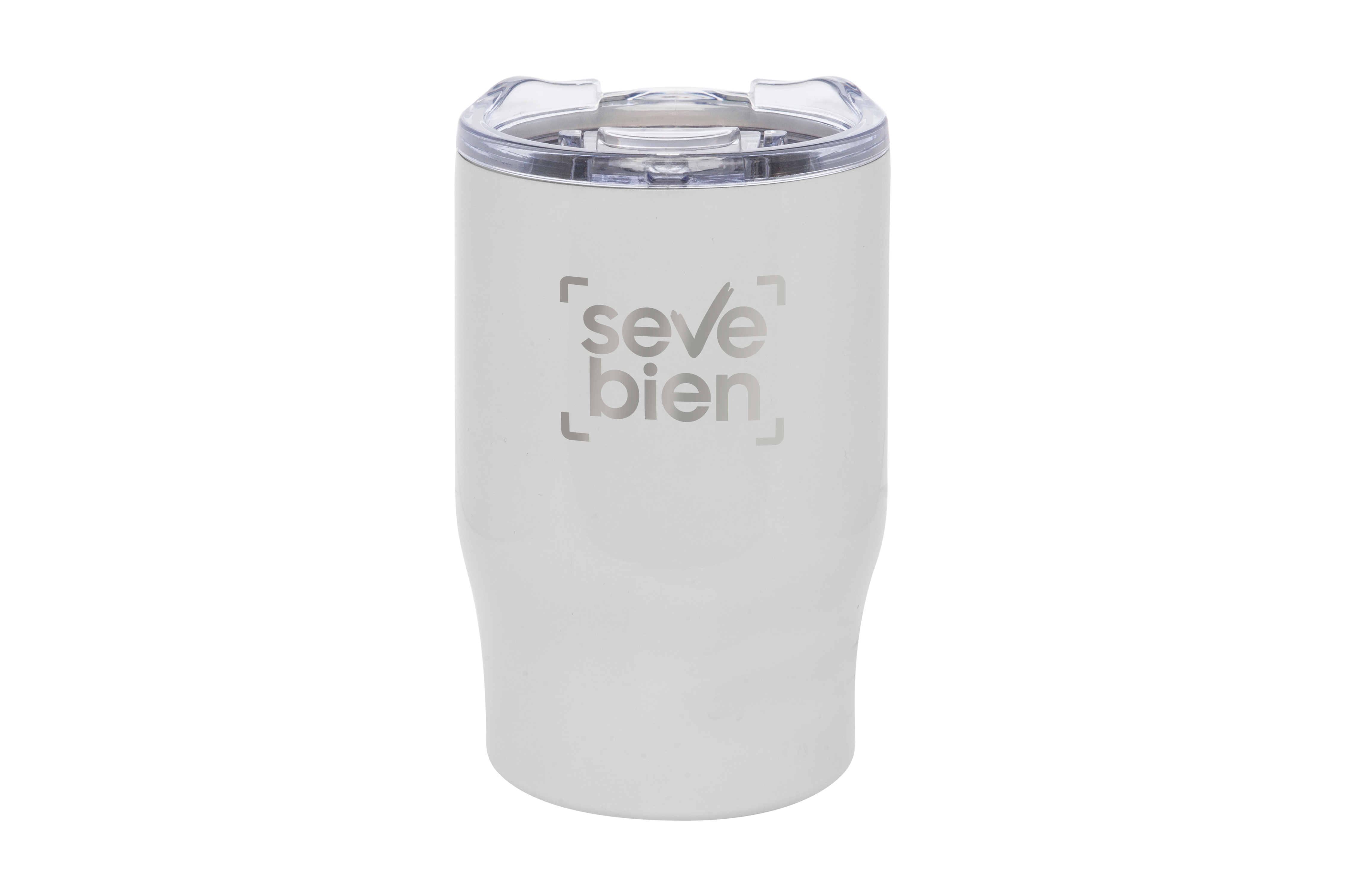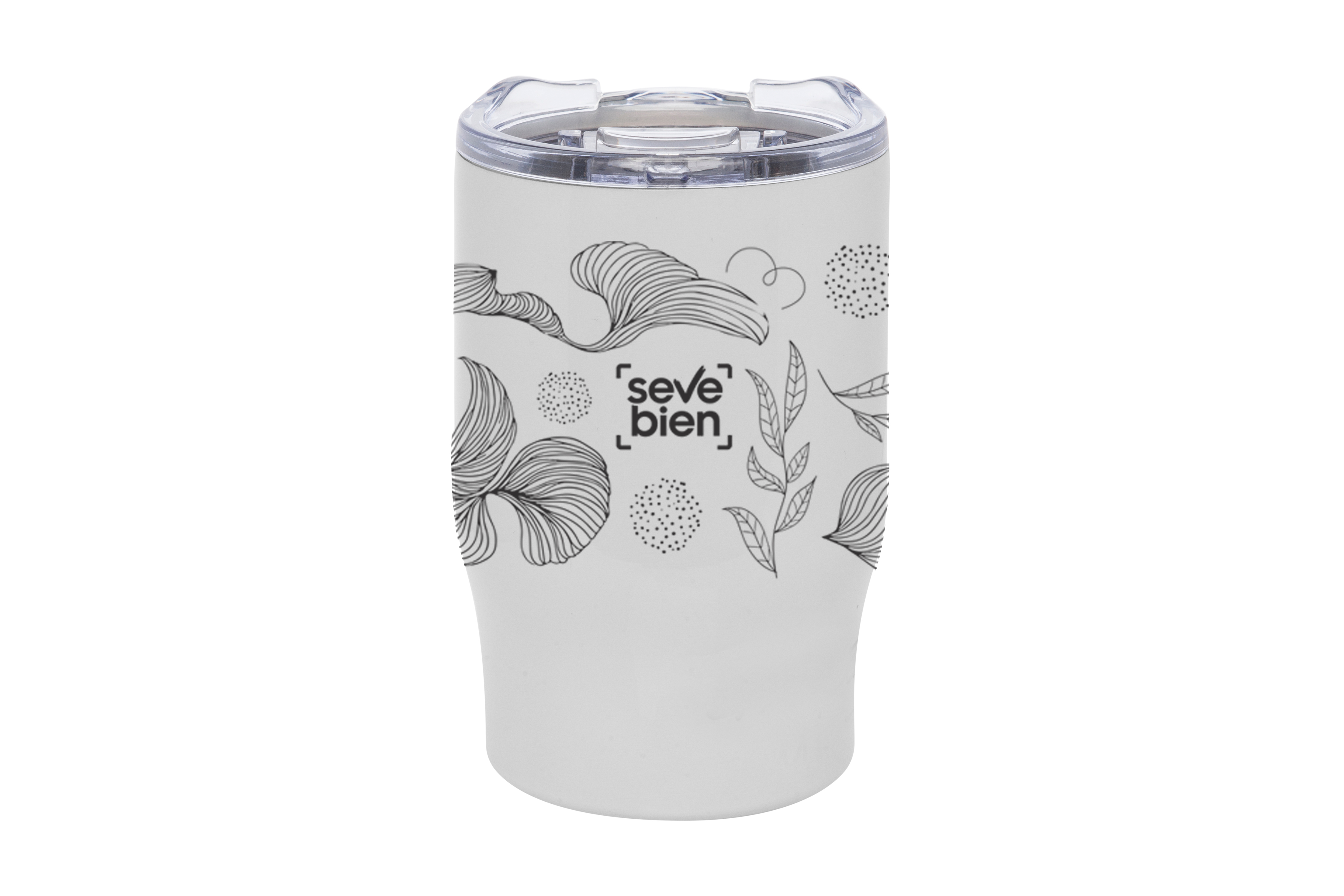 Ø 8,5 x 13,3 cm. Capacidad 350 ml. Acero inoxidable. Mug doble pared, sin tratamiento de vacío. Interior de acero 304 y exterior de acero 201. Tapa plástica transparente a presión con anillo de silicona. Mantienen las bebidas frías y calientes por más tiempo. No utilizar con bebidas gaseosas. Presentación en caja de regalo.