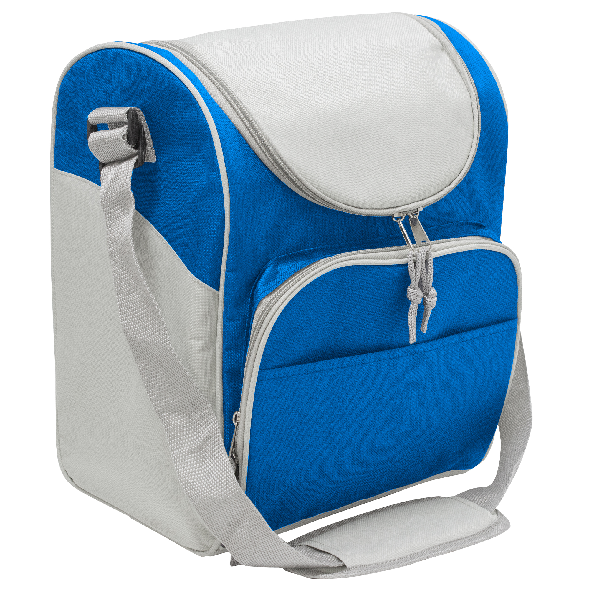 34 x 25 x 19 cm. Capacidad 16l. Polyester 600D. Bolso térmico. Interior totalmente recubierto de aluminio. Bolsillo frontal, correa extensible y cierres metálicos con tira cierres de cordón.
